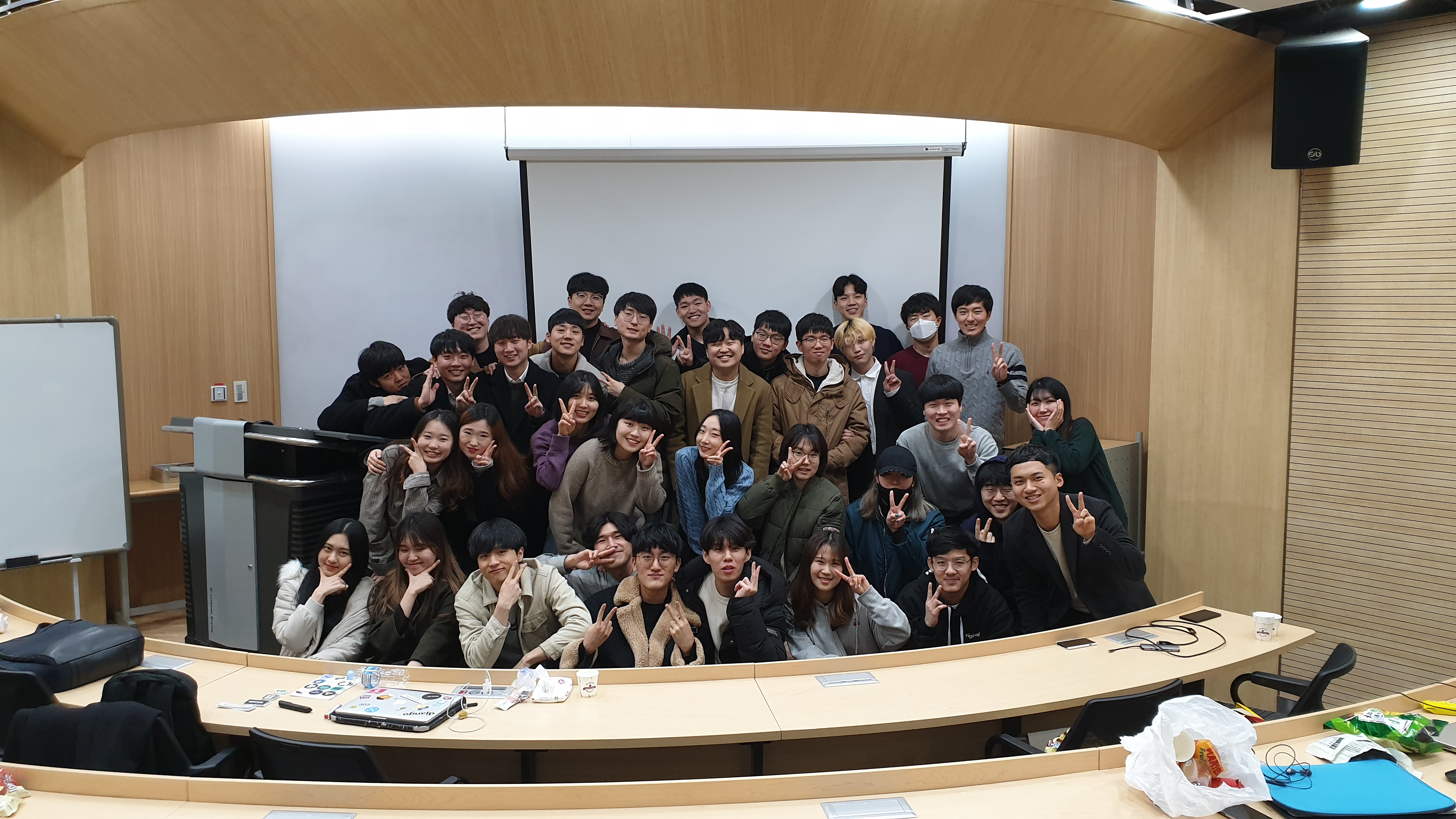 3주간의 프로젝트 대장정을 끝내고 6개의 조들이 모두 서울대학교 sk경영관 120호에 모였다.