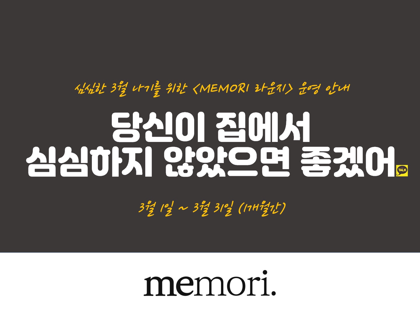 아쉽게도 코로나바이러스때문에 원래 예정되어있던 다음 모임일정이 잠시 보류되었는데, 대신에 임시로 메모리 라운지를 운영한다고 한다.