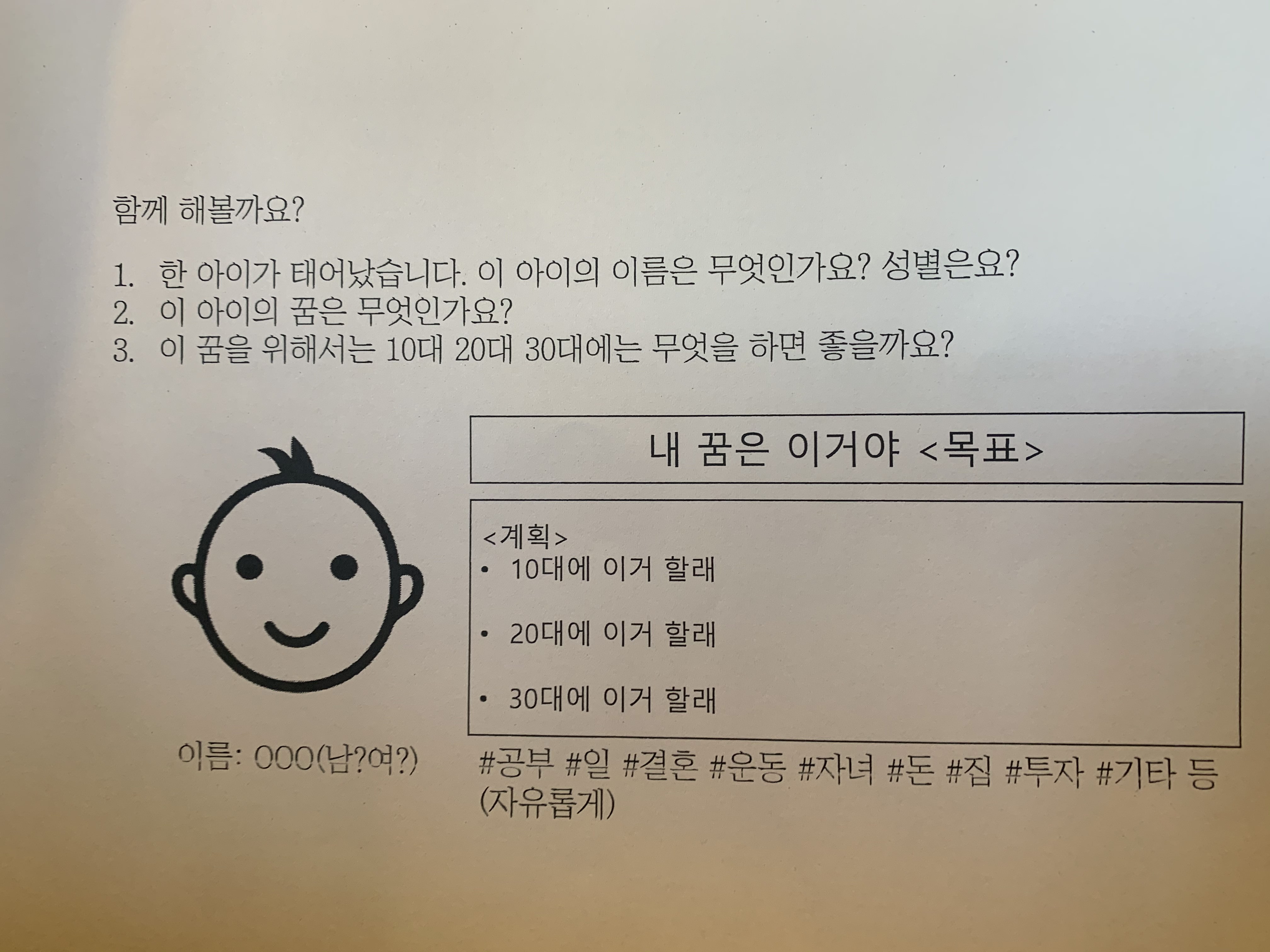 허승님과는 또 다른 방식으로, 이인상님은 OKR의 개념을 실제로 이해시키기 위해 참여할 수 있는 기회를 많이 만들어주셨다. 경영적인 이야기만 하면서 딱딱하고 어렵게 풀어낼수도 있었지만, 누구나 이해할 수 있는 주제(한 아이의 꿈을 위한 OKR)를 기준으로 하셨기 때문에 조금더 편안히 들을수 있었다.